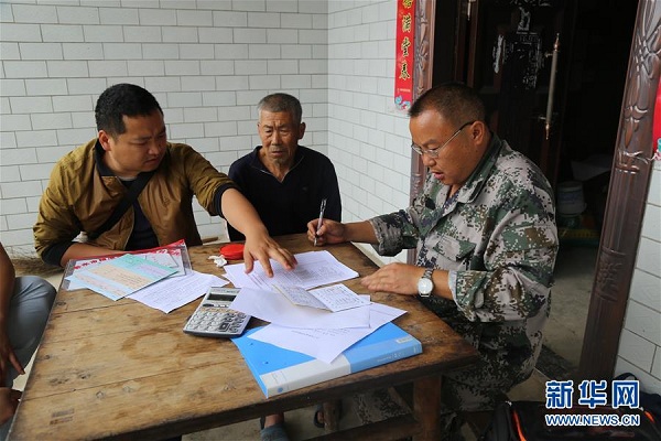 赤水駐村干部與貧困戶算收入支出賬(2017年5月攝)。新華社發(fā)