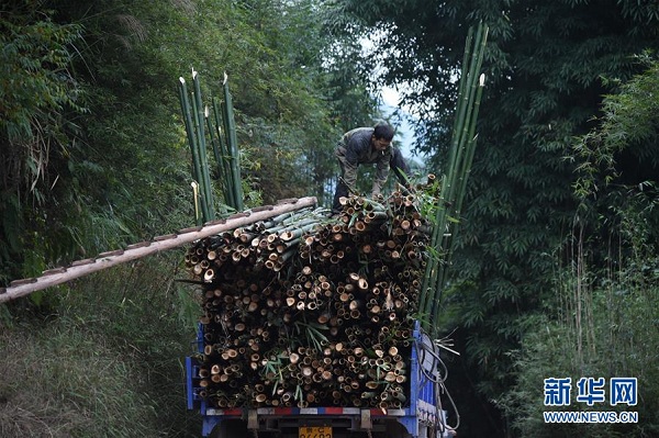 村民在運(yùn)送竹子(2015年11月13日攝)。新華社記者劉續(xù)攝