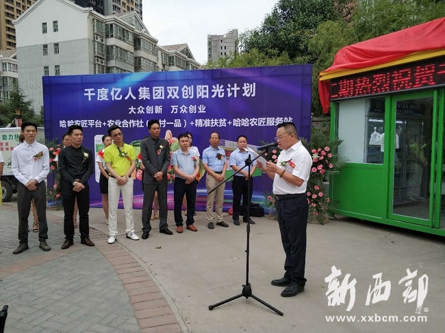 由西咸新區(qū)千度億人集團(tuán)全力申報(bào)的精準(zhǔn)扶貧項(xiàng)目——哈哈農(nóng)匠服務(wù)站落地揭牌儀式2018年8月17日在咸陽紫韻東城(二期)舉行。在各地嘉賓代表及陜西主流媒體共同見證下,千度億人集團(tuán)揭開“哈哈農(nóng)匠服務(wù)站”紅色面紗,開啟地域扶貧新模式。