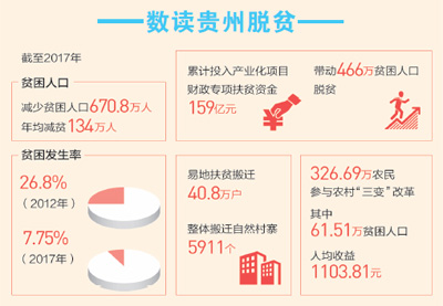 黨的十八大以來,貴州省認真貫徹落實習(xí)近平總書記關(guān)于扶貧工作的重要論述,堅持以脫貧攻堅統(tǒng)攬經(jīng)濟社會發(fā)展全局,建立了較為完整的脫貧攻堅政策體系、責(zé)任體系、制度體系、工作體系和社會動員體系,形成了所有工作向脫貧攻堅聚焦、各種資源向脫貧攻堅聚集、各方力量向脫貧攻堅聚合的格局。聚焦聚力貧困地區(qū)基礎(chǔ)設(shè)施薄弱這一突出短板,在西部地區(qū)率先實現(xiàn)縣縣通高速公路、鄉(xiāng)鄉(xiāng)通油路、村村通公路。把易地搬遷扶貧作為脫貧攻堅的重中之重,堅持城鎮(zhèn)化集中安置,以崗定搬、以產(chǎn)定搬,確保到2019年近200萬應(yīng)搬遷人口全部遷入新居。精準打好教育、醫(yī)療、住房“三保障”硬仗,每年壓縮6%行政經(jīng)費用于貧困地區(qū)教育發(fā)展,實現(xiàn)貧困人口基本醫(yī)療保險、大病保險、醫(yī)療救助、醫(yī)療扶助配套銜接的“四重醫(yī)療保障制度”全覆蓋,完成160萬戶農(nóng)村危房改造。