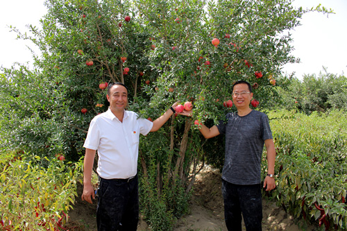 巴什玉吉買村是策勒縣石榴主產區(qū)之一,生產的石榴質優(yōu),深受消費者青睞。但過去,由于村民管理粗放,石榴產量低、收入少?!霸L惠聚”工作隊和村兩委針對這一問題邀請了專家為村民教授種植管理技術,還組織村民到臨縣的石榴園參觀學習。