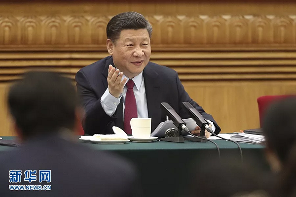3月8日,中共中央總書記、國家主席、中央軍委主席習近平參加十三屆全國人大一次會議山東代表團的審議。