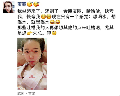 非常愛美網(wǎng)CEO鄭朝峰先生:目前,蕭菲的體驗(yàn)項(xiàng)目已做完,手術(shù)后的狀態(tài)也非常好的好??赡芎芏鄾]有親自目睹現(xiàn)場的求美者不會(huì)相信,她的隆胸手術(shù)從開始到結(jié)束僅僅只用一小時(shí)左右就做完了,更讓人震撼的是:蕭菲在術(shù)后第一時(shí)間還發(fā)了朋友圈!這樣的狀態(tài),你說好不好?