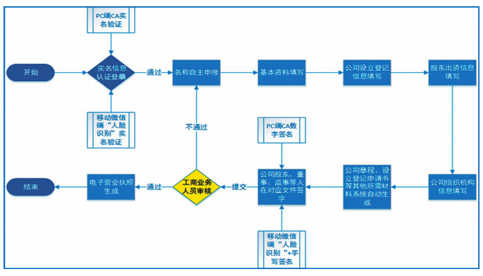 “微信辦照”的方式極為簡(jiǎn)便。申請(qǐng)人關(guān)注微信公眾號(hào)后,上傳身份證照片,進(jìn)行人臉識(shí)別與活體檢測(cè),比對(duì)公安部身份證數(shù)據(jù)庫(kù),無介質(zhì)完成實(shí)名認(rèn)證;按照全程智能輔導(dǎo)一次性填寫所有申報(bào)信息,系統(tǒng)會(huì)自動(dòng)生成表格材料,申請(qǐng)人只需通過手機(jī)屏幕在線手寫電子簽名,即可獲取系統(tǒng)審核通過的電子營(yíng)業(yè)執(zhí)照。
