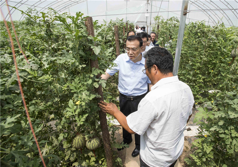 【李克強冒酷暑考察陜西楊凌農(nóng)業(yè)高新技術(shù)產(chǎn)業(yè)示范區(qū):形成制度紅利輻射全國】李克強10日上午考察陜西楊凌農(nóng)業(yè)高新技術(shù)產(chǎn)業(yè)示范區(qū)時,當?shù)貏倓偘l(fā)布高溫黃色預警。總理冒著39°C高溫一連考察四個園區(qū),鼓勵當?shù)匾蛟烊瞬鸥叩兀纬芍贫燃t利,把先進農(nóng)業(yè)技術(shù)和創(chuàng)新機制輻射到西部、農(nóng)業(yè)主產(chǎn)區(qū)乃至全國,讓農(nóng)民獲得更多收益。