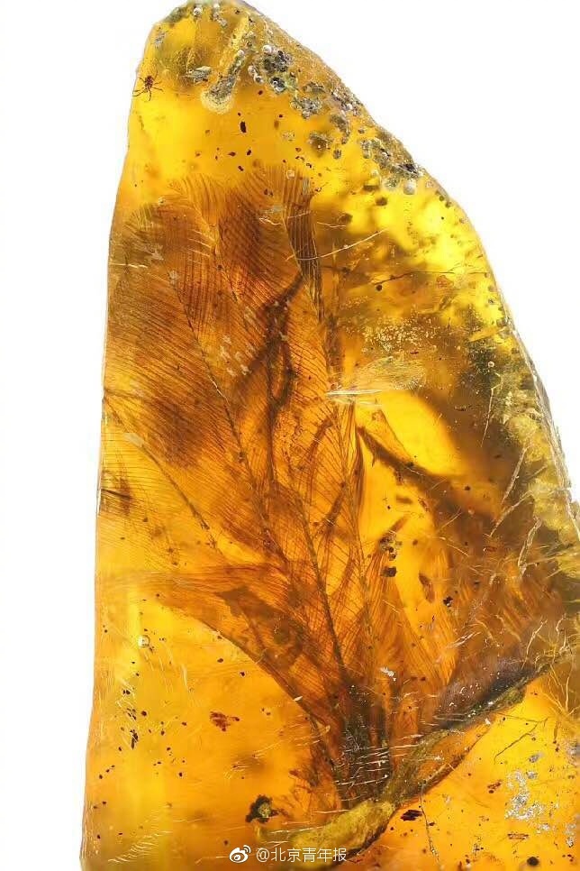 今天,以中國地質大學(北京)邢立達副教授為首的中美加多國研究者在北京發(fā)布了有史以來第一件琥珀中的古雛鳥標本,該標本距今9900萬年,與恐龍?zhí)幵谕粫r代。邢立達介紹說,“研究表明,此次發(fā)表的標本是一只較為完整的反鳥類雛鳥,記錄了其生命最初幾周的骨學和羽毛特征?!?/p>