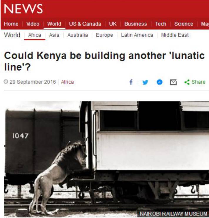 每經(jīng)小編(微信號:nbdnews)注意到,2016年,BBC曾發(fā)表文章,質(zhì)疑蒙內(nèi)鐵路計劃的可行性。在一百多年前,英國議員曾經(jīng)把這條線路稱作“瘋狂鐵路”(lunatic line),英國殖民官員和肯尼亞當(dāng)?shù)厝嗣裨谶@里付出過慘重的生命代價。