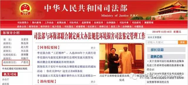 第四步:進(jìn)入政法機(jī)關(guān)提任副部。2009年,盧恩光再度跨界,出任司法部政治部副主任,他此前幾乎沒有政法工作經(jīng)驗(yàn)。在這一崗位工作六年后,他在去年11月由副轉(zhuǎn)正,并進(jìn)入黨組班子,提任副部。