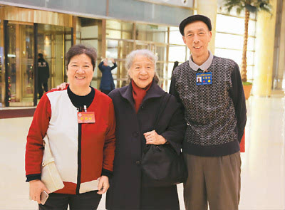 11月28日,前來參加第九次作代會的作家葉文玲(左一)報到時與代表友人合影。