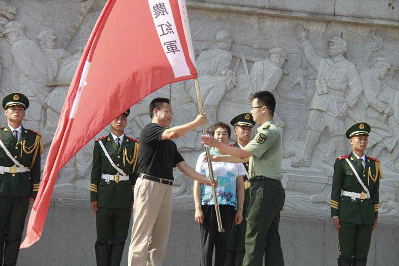 青年記者代表朱西迪從趙子忠副臺長手中接過旗幟 央廣網記者王晶攝