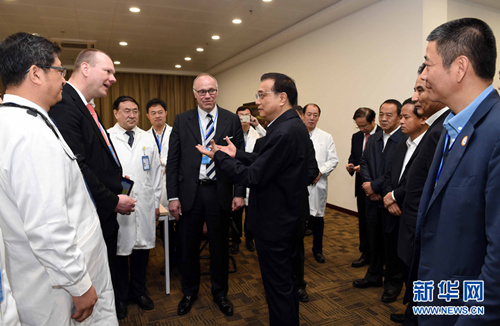“Guten Tag(你好)!” 3月25日,李克強(qiáng)總理對(duì)著一面屏幕,用德語向遠(yuǎn)在德國(guó)漢堡的醫(yī)生問好。在海南博鰲樂城國(guó)際醫(yī)療旅游先行區(qū),中外醫(yī)生們正在遠(yuǎn)程會(huì)議室通過視頻會(huì)議,探討一位肺癌晚期患者的治療方案。這里是目前全國(guó)唯一由國(guó)務(wù)院批準(zhǔn)、以醫(yī)療旅游為主導(dǎo)的、致力于發(fā)展現(xiàn)代服務(wù)業(yè)的第三產(chǎn)業(yè)園區(qū)。在了解了醫(yī)療旅游創(chuàng)新產(chǎn)業(yè)的建設(shè)情況后,總理稱贊道:“這就是醫(yī)療+互聯(lián)網(wǎng)!”