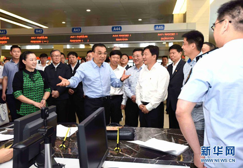2016年5月23日至24日,中共中央政治局常委、國(guó)務(wù)院總理李克強(qiáng)在湖北考察。這是5月23日,李克強(qiáng)在十堰市民服務(wù)中心詢問“放管服”改革落實(shí)情況。 新華社記者饒愛民攝