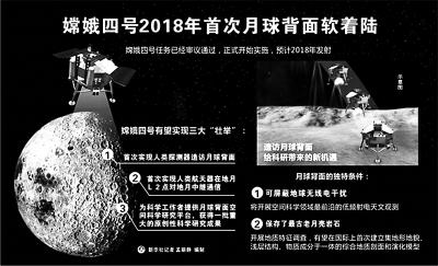 中國(guó)國(guó)家航天局探月與航天工程中心副主任劉彤杰透露,中國(guó)計(jì)劃于2018年5月底或6月初將嫦娥四號(hào)的中繼衛(wèi)星發(fā)射至地月拉格朗日L2點(diǎn)的Halo軌道上,并在約半年后發(fā)射嫦娥四號(hào)的著陸器和巡視器,對(duì)月球背面南極艾特肯盆地開(kāi)展著陸巡視探測(cè)。