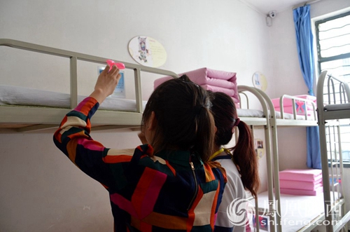 大學(xué)生在監(jiān)獄工作人員引導(dǎo)下,參觀了服刑人員的生活區(qū)、習(xí)藝區(qū)。在服刑人員宿舍,干凈整齊的床鋪、豐富的文化作品、甚至貼在床邊的愛心卡片都吸引了大學(xué)生駐足觀看。繪畫作品展示墻上布滿的扇形裝飾,活動(dòng)室內(nèi)“善”文化大講堂、讀書角,食堂為過生日的服刑人員專門準(zhǔn)備的可播放家人祝福短片的生日間,處處體現(xiàn)出監(jiān)獄對(duì)于服刑人員的細(xì)致關(guān)懷,也將“以善養(yǎng)德”的主旨滲透到教育改善工作的每一個(gè)細(xì)節(jié)中。