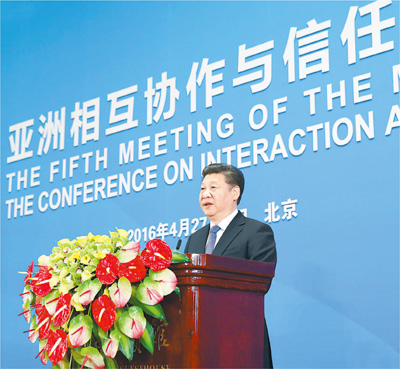 四月二十八日,亞洲相互協(xié)作與信任措施會議第五次外長會議在北京開幕。國家主席習(xí)近平出席開幕式并發(fā)表題為《凝聚共識促進對話共創(chuàng)亞洲和平與繁榮的美好未來》的重要講話。