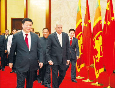國家主席習(xí)近平8日在人民大會(huì)堂會(huì)見斯里蘭卡總理維克勒馬辛哈。