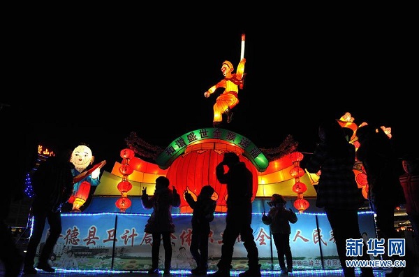 2月21日,群眾在寧夏隆德縣觀賞燈會。當(dāng)日,全國各地群眾通過民俗表演、猜燈謎、做花燈等豐富多彩的方式,迎接即將到來的元宵佳節(jié)。新華社記者 彭昭之 攝