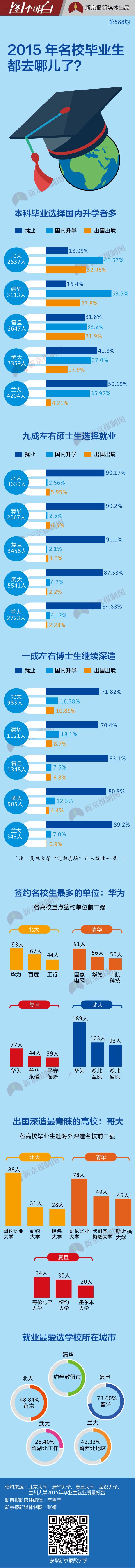 北大、清華等名校生畢業(yè)后海外深造青睞哪些高校?國(guó)內(nèi)簽約名校生最多的公司是哪家?博士生畢業(yè)后都去干嗎了?——近日,教育部直屬的75所高校陸續(xù)在官方網(wǎng)站發(fā)布2015年畢業(yè)生就業(yè)質(zhì)量報(bào)告。小編分別從全國(guó)東部、中部、西部地區(qū)選擇5家名校,看看2015年的畢業(yè)生去向。