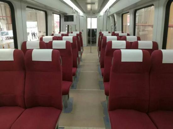 磁浮列車正式開通后,全線將由藍(lán)白和紅白相間的5輛列車運(yùn)行,每十分鐘雙向開行一趟列車。