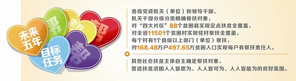日前,省委辦公廳、省政府辦公廳印發(fā)的《四川省社會(huì)扶貧專項(xiàng)方案》明確,未來5年,各級(jí)黨政機(jī)關(guān)(單位)和領(lǐng)導(dǎo)干部、機(jī)關(guān)干部將分級(jí)分類明確幫扶對(duì)象,對(duì)88個(gè)貧困縣實(shí)現(xiàn)定點(diǎn)扶貧全覆蓋,對(duì)11501個(gè)貧困村實(shí)現(xiàn)駐村幫扶全覆蓋,每個(gè)村有1個(gè)縣級(jí)以上部門(單位)幫扶,對(duì)168.48萬戶497.65萬貧困人口每戶都有幫扶責(zé)任人,其他社會(huì)扶貧主體自主確定幫扶對(duì)象;充分發(fā)揮獨(dú)特優(yōu)勢(shì),實(shí)現(xiàn)幫扶措施與脫貧需求有機(jī)對(duì)接,解決最迫切難題,實(shí)現(xiàn)貧困村貧困戶穩(wěn)定增收、脫貧致富;進(jìn)一步發(fā)掘社會(huì)各界參與扶貧開發(fā)巨大潛力,確保每年社會(huì)扶貧有實(shí)實(shí)在在的投入,為貧困村貧困戶加快發(fā)展提供有力支持。