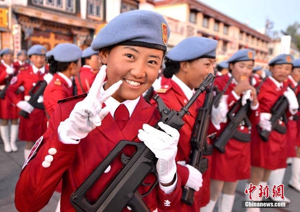 原標(biāo)題:西藏自治區(qū)成立50周年慶典女民兵亮相