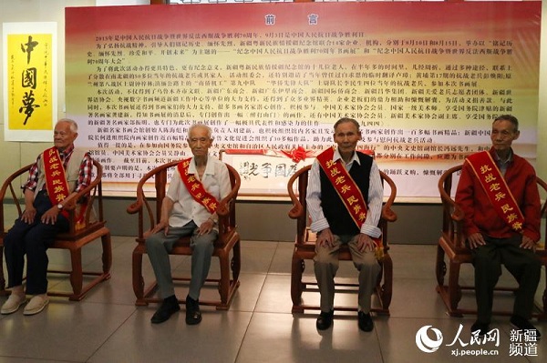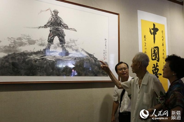人民網烏魯木齊8月10日電(韓婷) 2015年是中國人民抗日戰(zhàn)爭暨世界反法西斯戰(zhàn)爭勝利70周年。8月10日,以“銘記歷史、緬懷先烈、珍愛和平、開創(chuàng)未來”為主題的紀念中國人民抗日戰(zhàn)爭勝利70周年書畫展在烏魯木齊舉辦。