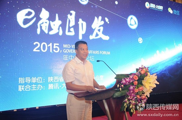 ?8月6日,騰訊在西安舉辦“E觸即發(fā)2015年中政務(wù)論壇”,并權(quán)威發(fā)布《互聯(lián)網(wǎng)+陜西指數(shù)報告》,論壇邀請百名政府官員、業(yè)界專家及行業(yè)學(xué)者,一起對“互聯(lián)網(wǎng)+”陜西戰(zhàn)略進入深入討論。陜西省委網(wǎng)信辦副主任魯世宗、騰訊大秦網(wǎng)總編輯鄭亮為大會致辭。