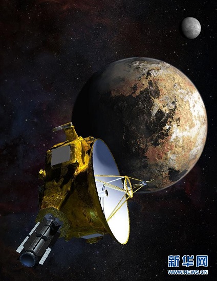 這是美國宇航局2015年7月提供的“新視野”號探測器與冥王星及其衛(wèi)星“會面”的設(shè)想圖。新華社/法新