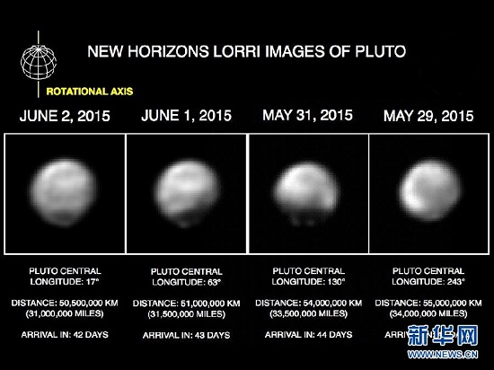 這是美國宇航局與約翰斯·霍普金斯大學(xué)應(yīng)用物理學(xué)實驗室和西南研究院2015年6月11日制成的“新視野”號探測器所攝冥王星照片的對比圖。新華社/美聯(lián)