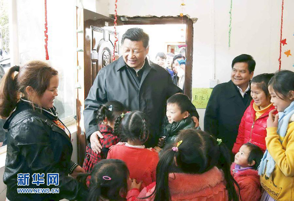 2015年2月14日正在陜西考察工作的習(xí)近平總書記專程來到楊家?guī)X福州希望小學(xué),察看學(xué)校辦學(xué)情況,同老師們進(jìn)行交流。