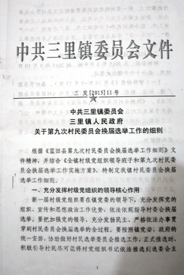 近日,陜西村官網(wǎng)接到群眾反映:藍田縣三里鎮(zhèn)在第九次村委會換屆選舉中工作中,不按《選舉工作細則》辦事,任性操作,造成村民對黨和政府干部作風(fēng)不滿,對黨和政府的公信力提出嚴正質(zhì)疑。