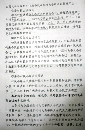 根據(jù)三里鎮(zhèn)政府《三發(fā)(2015)11號文件》中:“二.村民委員會換屆選舉具體步驟安排……(四).推選村民選舉委員會……2.村民選舉委員會的產(chǎn)生方式……①由村民會議推選:‘推選村民委員會成員的村民會議,由鎮(zhèn)換屆選舉工作指導(dǎo)組或者由上一屆村民委員會召集和主持。既可召開本村有選舉權(quán)過半數(shù)的村民或者三分之一以上的戶代表參加的村民會議,以舉手表決或無記名投票的方式推選,按得票多少的順序確定當(dāng)選’”??墒窃趯嶋H操作中,由鎮(zhèn)上指定的召集人,只是叫了個別村民召開了所謂的村民“推選村民選舉委員會”,其不合法、不合理的做法,當(dāng)即遭到村民的普遍質(zhì)疑,其理由是:按文件的要求,應(yīng)由上一界村民委員會召集和主持。但是,事實是上一界村民委員會主任和兩位組長(本村有四個村民小組)對召開的村民委員會不知情、沒參與。
