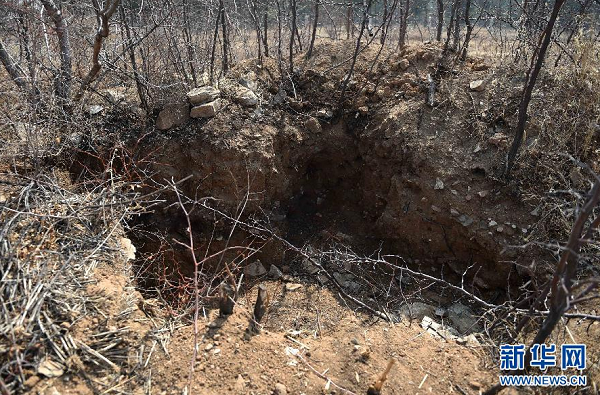這是凌源市紅山街道辦事處牛河梁村上窯溝山梁上的一處盜掘現(xiàn)場(4月9日攝)。