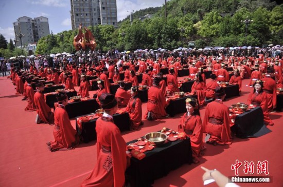 5月2日,“予我三天·還你千年”第二屆重慶酉陽(yáng)桃花源大型傳統(tǒng)漢式集體婚典在桃花源景區(qū)盛大啟幕。