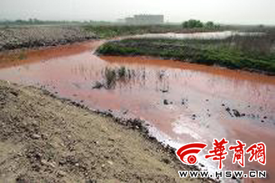 在岐山縣岐渭水利風景區(qū)古城段河堤北側(cè),約1公里長的河水呈現(xiàn)出鐵銹紅色且漂浮有大量油污,附近可以看到有一根直徑80厘米的排水管將污水排進渭河河道。