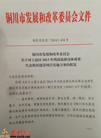 銅川市發(fā)改委對王益區(qū)2013年鞏固退耕還林成果生態(tài)移民建設項目實施方案的批復