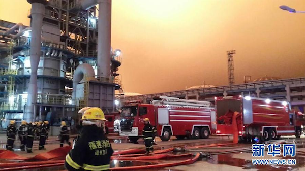 昨日18時56分許,福建省漳州古雷騰龍芳烴二甲苯裝置發(fā)生漏油起火事故,截至發(fā)稿時,中間罐區(qū)仍有2個重石腦油和1個重整液儲罐著火。