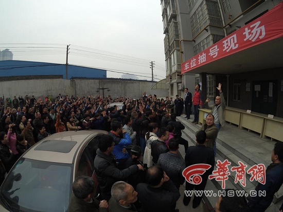 昨日一早,“萬(wàn)國(guó)·遠(yuǎn)鑒名筑”小區(qū)院里人聲鼎沸,200多名業(yè)主聚集在一起,原來(lái)是小區(qū)物業(yè)辦要在早上對(duì)小區(qū)的地面停車位抽號(hào),以此來(lái)決定停車權(quán)。上午9時(shí)47分,抽號(hào)會(huì)正式開(kāi)始,小區(qū)物業(yè)辦負(fù)責(zé)人一上臺(tái),業(yè)主就噓聲一片,負(fù)責(zé)人連話都講不了,最終不得不決定,暫時(shí)取消此次抓鬮活動(dòng),對(duì)如何停車再和業(yè)主商議。