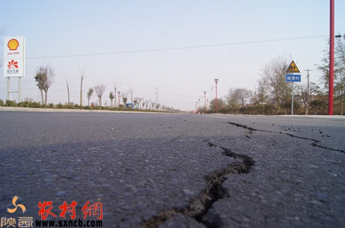 隨后記者沿路繼續(xù)前行,不遠(yuǎn)處就是大荔高鐵站,距高鐵站不遠(yuǎn)的三中村路口附近,又見路面中央坑坑洼洼高低不平,路面形成起伏的波浪形狀,好似“搓板”路面,同時(shí)路面裂縫不斷,甚至有些地方出現(xiàn)大片龜裂現(xiàn)象,好多車輛在此減速慢行。