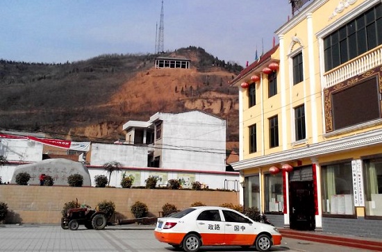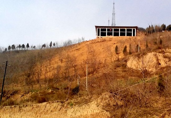 3月15日,陜西網(wǎng)根據(jù)群眾提供的情況來到眉縣常興鎮(zhèn)楊家村。站在楊家村村委會院子,向北抬頭就能看見坡頂上尚未完工的廟宇,廟宇下數(shù)十畝被黃土掩埋的樹木格外醒目,與周邊坡面上的樹木相比形成了極大的反差。