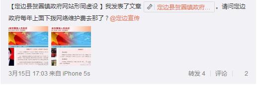 據(jù)新浪微博爆料:鄉(xiāng)鎮(zhèn)政府網(wǎng)站政務(wù)信息公開(kāi)時(shí)刻告知著廣大群眾政府在做什么,也時(shí)刻在傳達(dá)著上一級(jí)人民政府的政策和精神。鎮(zhèn)情鎮(zhèn)貌、名優(yōu)村莊、一村一品、工作動(dòng)態(tài)、致富帶頭人等欄目的不斷優(yōu)化和更新,無(wú)不彰顯著一級(jí)鄉(xiāng)鎮(zhèn)政府欣欣向榮的工作面貌。