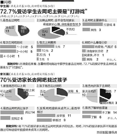 不少市民撥打華商報24小時新聞熱線029-88880000投訴,為何黑網(wǎng)吧屢禁不絕。但調查問卷顯示,有7成家長發(fā)現(xiàn)黑網(wǎng)吧或者正規(guī)網(wǎng)吧違規(guī)經(jīng)營卻不知道給誰舉報。