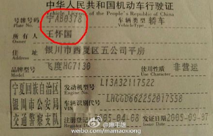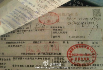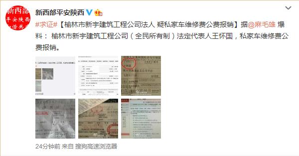 據(jù)新浪微博爆料:榆林市新宇建筑工程公司(全民所有制)法定代表人王懷國,私家車維修費公費報銷。私費公報?