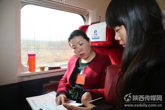 赴京列車上:代表完善建議記者忙碌采訪