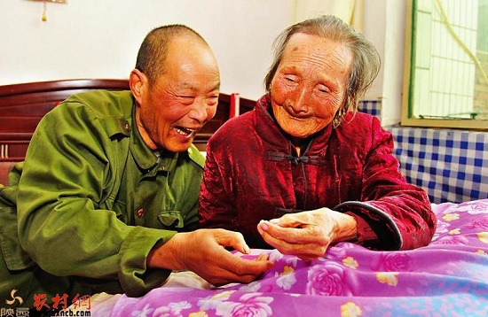 姚富國(guó)為母親穿衣。