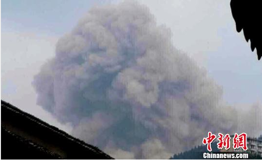 爆炸現(xiàn)場騰起的巨大“云團"。網(wǎng)友提供攝