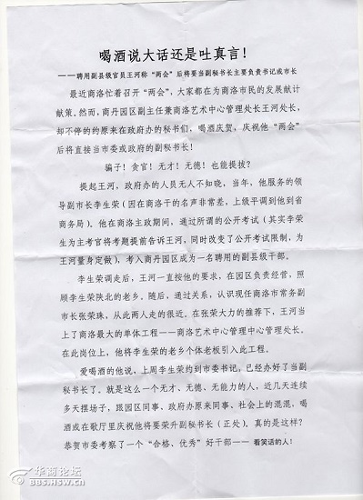 商洛副縣級官員“王河”量身定做的市委副秘書長