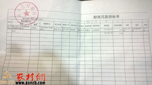 潼關縣財政局財政用款指標單