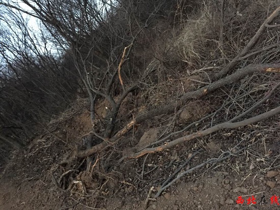 2015年1月22日,西北信息報(bào)接延安市富縣寺仙村村民反映地處富縣境內(nèi)的橋北林業(yè)局張村驛林場(chǎng)稀有樹種長(zhǎng)期有人盜取,林木嚴(yán)重遭毀,多次向林場(chǎng)反映無果,只好借助媒體制止毀林行為。記者在舉報(bào)人的指引下,直接前往位于張村驛林場(chǎng)的寺仙鄉(xiāng)太平村原莊溝林區(qū),進(jìn)入林區(qū),已是晚上6點(diǎn),夜色依然沒有掩蓋住伐木后的狼藉,東倒西歪的樹木,黃土裸露的無障礙車路,讓人感到入骨的寒冷和痛心。順路前行,只見大面積被砍伐后空曠的場(chǎng)地,肆意的砍采,導(dǎo)致臨近許多樹木攔腰折斷,橫七豎八,猶如戰(zhàn)敗的沙場(chǎng)。順著殘樹斷木繼續(xù)前行,毫不費(fèi)力便到達(dá)砍伐現(xiàn)場(chǎng),正有一輛勾機(jī)在作業(yè),十幾個(gè)人在忙前忙后,旁邊停著幾輛砍伐樹木的車輛,車型不一,車牌號(hào)分別是陜E55401、陜JZ3180、陜JCC079、陜JDY968,對(duì)于記者“不速之客”的到來,絲毫沒有驚恐和意外。記者詢問他們?cè)谶@是在干什么,一位自稱帶隊(duì)的男子說他們?cè)谛蘼罚?dāng)看到記者拍照時(shí),上前阻止并告訴記者稍等,他們老板馬上就來了。隨后記者撥通了延安市森林公安局的值班電話,在電話說明情況時(shí),盜伐者見事不妙倉(cāng)惶跑走,隨后橋北森林公安局工作人員也開著警車來到現(xiàn)場(chǎng),對(duì)現(xiàn)場(chǎng)情況做了查看和詢問。
