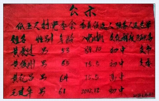 據(jù)知情群眾透漏,根據(jù)藍(lán)田縣三里鎮(zhèn)黨委的統(tǒng)一安排部署,低五尺村黨支部積極配合這次選舉工作,按照實施方案已經(jīng)進(jìn)入到黨員群眾推薦候選人階段。但在這個階段出現(xiàn)了一些不符合本次選舉推薦候選人條件的事件。在黨員群眾推薦候選人階段,由于部分黨員、群眾代表對本次選舉推薦候選人條件吃的不透,導(dǎo)致在推薦候選人中,將不符合條件的候選人推薦出來。如黃俊剛(身份證號61012219490818XXXX),年齡66歲;黃紀(jì)昌(身份證號61012219541026XXXX),年齡61歲,從未當(dāng)過村干部;毛建華(身份證號61012219530606XXXX),年齡62歲,黨關(guān)系2014年下半年,才從三里鎮(zhèn)黨委轉(zhuǎn)入該村支部,從未當(dāng)過村干部。